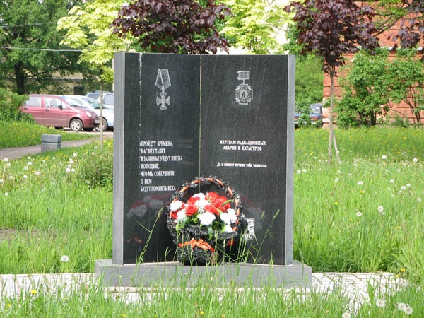 Мы же продолжаем ехать по Колпинскому шоссе, которое после первого перекрестка получает название проспекта Ленина. Едем по нему до моста через Полуциркульный канал, то есть, до первого моста. Слева будет сквер, в котором стоит памятник жертвам радиационных аварий и катастроф: