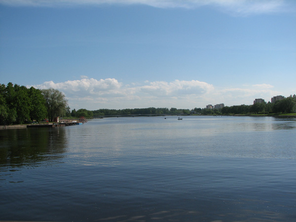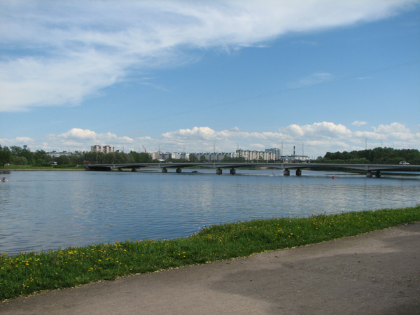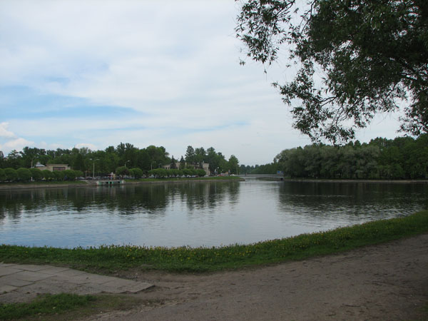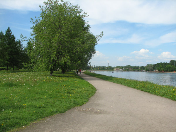 По Пролетарской возвращаемся к Большому Ижорскому мосту. На берегу Ижорского пруда — зона отдыха колпинцев. Нынче был погожий день, так что видовые фотоснимки удались: