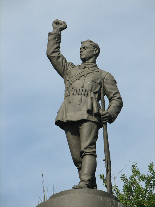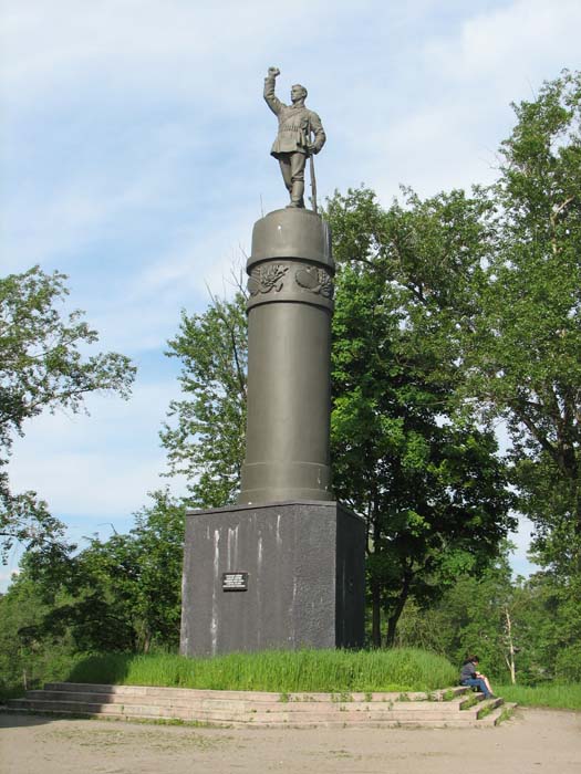 Что мы увидим за железной дорогой? В первую очередь, памятник, дословно: "Отважным бойцам Красной Гвардии, отдавшим свою жизнь в борьбе за дело Пролетарской революции", скульптор Е. Г. Захаров, открыт в 1937 г.: