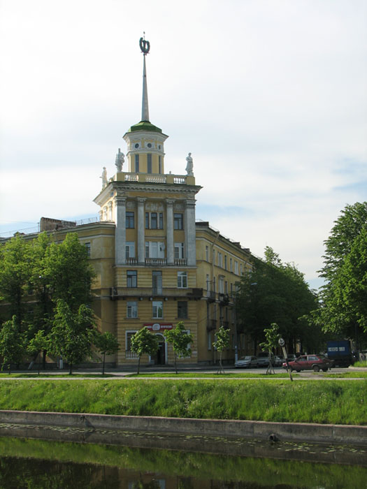 За мостом через Полукруглый канал свернем налево вдоль старого здания заводоуправления — "визитной карточки" Колпина: