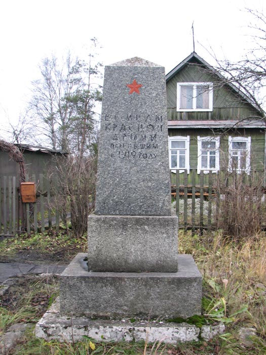 В том же Путролово, теперь ставшим Ям-Ижорой, подальше от реки, но тоже справа от Московского шоссе стоит скромная братская могила воинов Красной Армии, погибших в 1919 году — напоминание о боях с Юденичем: