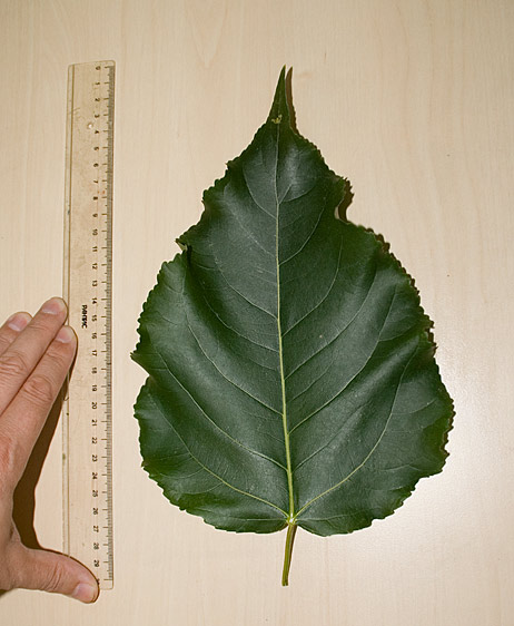 Как у же писал тут: это жаркое лето оказалось комфортным для дворовых тополей. За пару месяцев их молодые побеги выросли на 1.5 метра: в начале лета практически не выделялись из травы, а в середине августа выросли почти в мой рост. К сожалению пару дней назад эту поросль вырубили, а вот оттуда листочек на память: