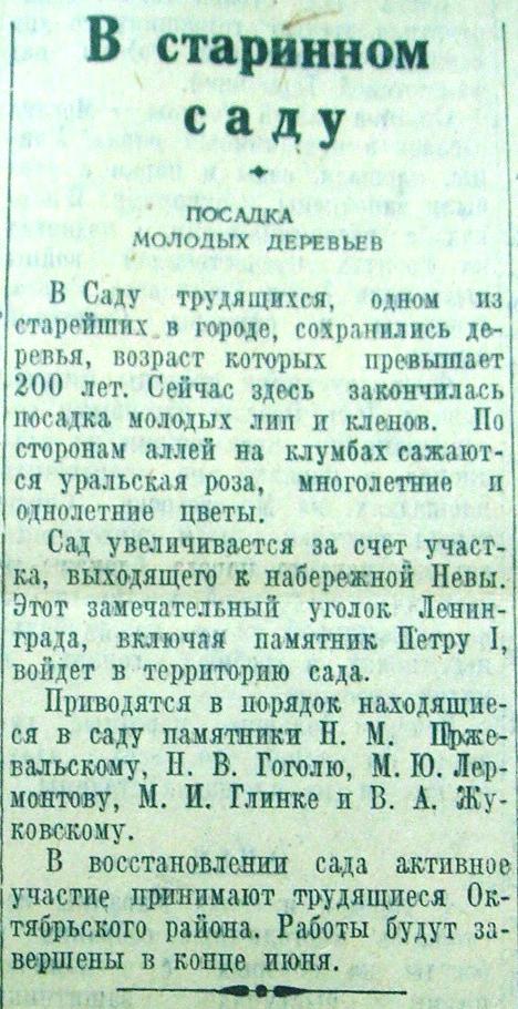 Заметка из "Вечернего Ленинграда" за 10.05.1948