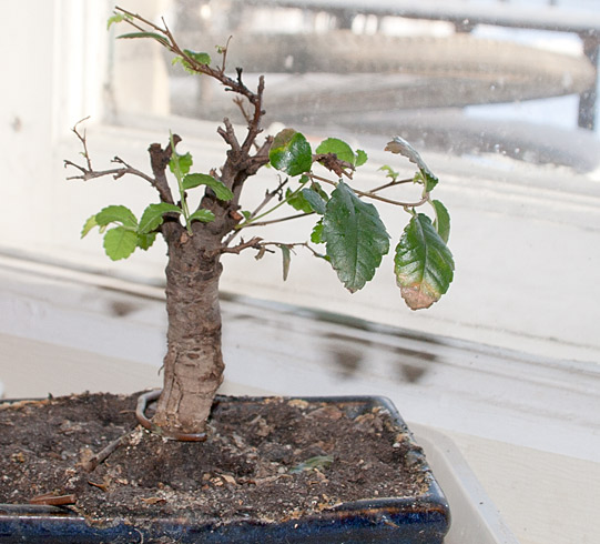 На подоконнике растут деревья - вязы.