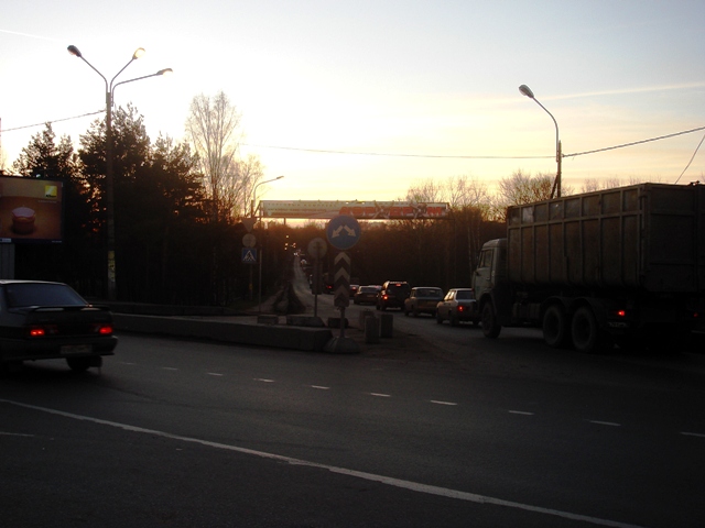 тут как бы и правильно и в то же время описка. На снимке вправо от мусоровозки и будет - внизу мототрасса ,а наверху стоял памятники Сталину-Ленину на краю уже Выборгского шоссе. Просто от перекрестка Поклоногорской, Энгельса, Тореза и Выборгского шоссе пр. Энгельса на горе уходит сначала параллельно Выборскому на запад, а потом правее на север.