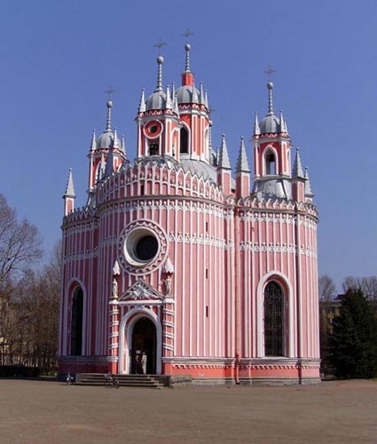 | Цитата: | Среди всех церквей Петербурга, а может даже и всей России, особой является Чесменкая церковь, благодаря своей уникальной архитектуре.