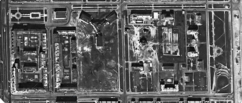 б) Сдвигаю верхнюю границу до "не позднее 1965 года" на основании того же источника. Проверить, правду ли пишут на citywalls, можно по аэрофотосъёмке 1966 года: