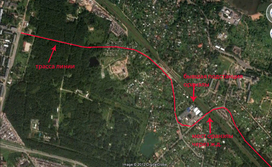 Где в Ораниенбауме находилась линий Оранэлы (не электрофицированный участок)? Не осталось ли насыпи, следов остановок и т.д. Знатоки - подскажите ...