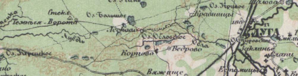 | Цитата: | ...Вот что рассказывает об этом один из участников боев: “В 14 часов от нашей заставы, находившейся в трех километрах от города (Луги – Л. Х.), было получено донесение, что у деревни Темные Ворота появился отряд белых. Вторая застава донесла, что белые движутся от озера Омчино. Станции Серебрянка и Преображенская (Толмачево) белые заняли еще утром. Наш отряд в составе 72 человек собрался на проспекте Урицкого. Вскоре слышна стала перестрелка, — это отходила от Темных Ворот наша застава. Зная, что наши части уже отступили за город, мы отошли к деревне Заклинье и там окопались вместе с 180 бойцами 49-го стрелкового полка.
