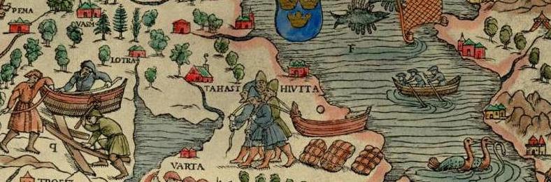 Согласен, что здесь в тему только изображение московитов, волокущих лодки и какие-то тюки с грузами из Белого моря в озера центральной Финляндии на широте Karlabi, т. е. Гамле-Карлебю = Коккола. Очень, кстати, далеко от обсуждаемых Дудергофа и Пулково.