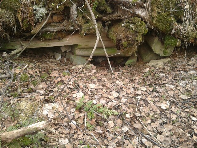 Из интересного: полевая огневая точка с амбразурным коробом ДОТ-4 и хорошо сохранившимися бревнами и досками фронтальной стенки, перископом, трубой и прочими неведомыми артефактами.