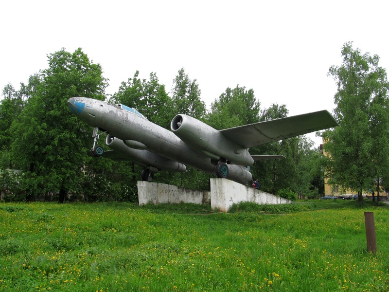 Итак начнём пожалуй. Как многие (а в наше время скорее всего большинство) туристы из Петербурга мы выдвигаемся в сторону Великого Новгорода на четырехколесном самодвижущемся экипаже. И первое место, куда лично нас приводит дорога это пригород Новгорода – Кречевицы, известные своим аэродромом. В данном случае этот аэродром и послужил причиной появления в Кречивицах памятника самолету Ил-28, который, как нам любезно сообщает википедия, является первым советским реактивным тактическим бомбардировщиком.