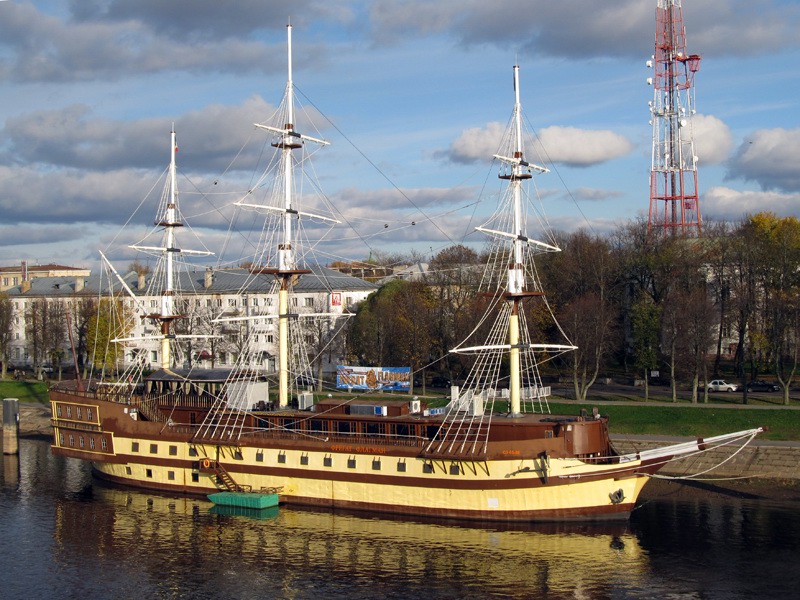 Посередине пути между туристкой и художником (будущим) пришвартован "Летучий голландец" (в народе) или "Фрегат Флагман" (официально).