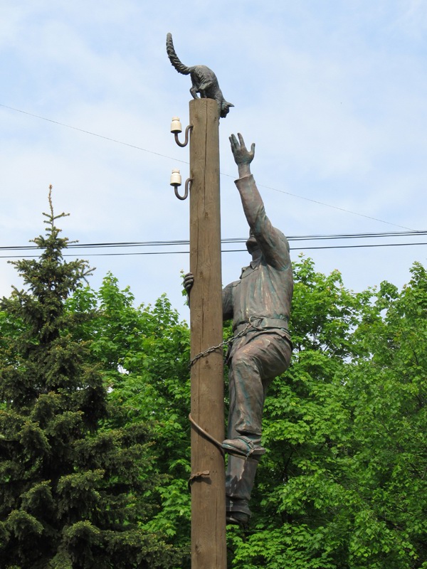 Опять же «кстати» - это тоже вторая скульптура подобного рода. Первую встретил в Томске. Да собственно вот она. Но новгородский монтер как-то душевнее.