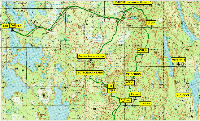А приблизительно, там где точка "Дорога без покрытия" и есть этот экстремальный брод, бобровая плотина и хатки бобров. Мы там стояли лагерем.