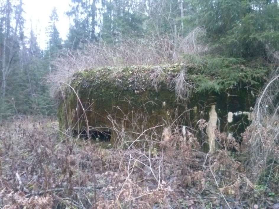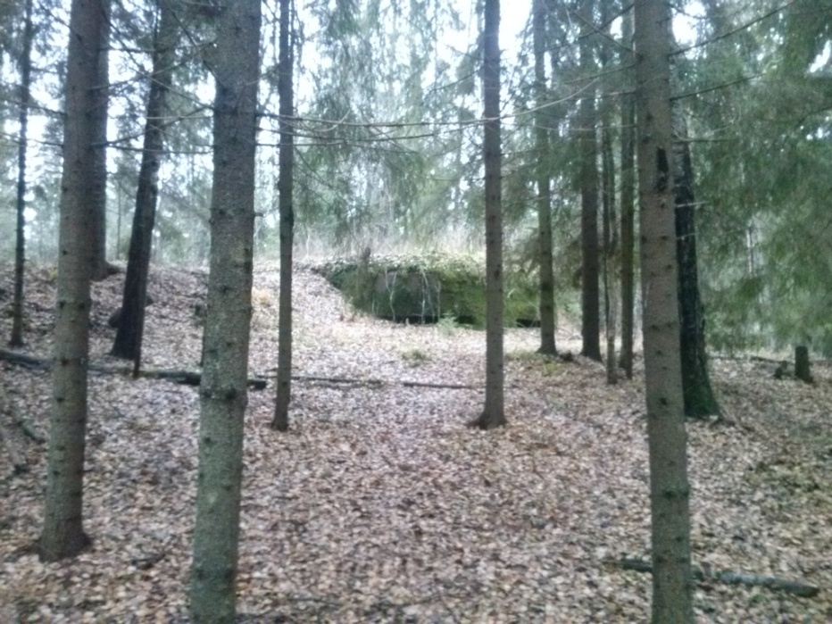 В общем, сел да поехал. Неправду говорят, что в России нет дорог. Кое-где есть и даже очень хорошие. По крайней мере, от Купчино до западного края разлива реки Грузинка 45 минут езды, без лишней спешки. Хорошо, что у меня фотографическая память и в принципе я немного те края знаю. Хотя, указанных дотов никогда не видел. Просто избалованный Яндекс.Навигатором в городе и на трассах, я совсем забыл, что в 50-100 метрах от дороги в елках Яндекс.Навигатор без загруженных предварительно карт совершенно бесполезен, ибо интернетов в этой "глуши" кот наплакал. В общем, нашел я сначала наблюдательный пункт, а потом и необходимый дот.