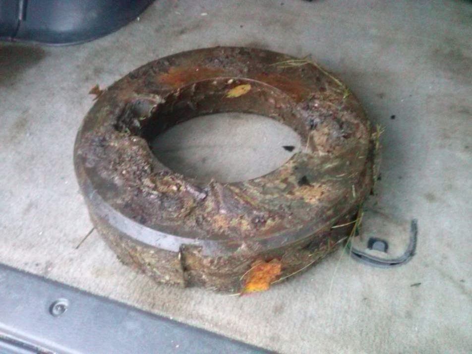 Уж не знаю - это та железка, которую надо было найти, или другая. Но явно какая-та часть абразуры/маски. Доволочил её до дороги и положил в багажник, где она теперь и живет - ждет кому её надо отдать в культурно-краеведческих целях.