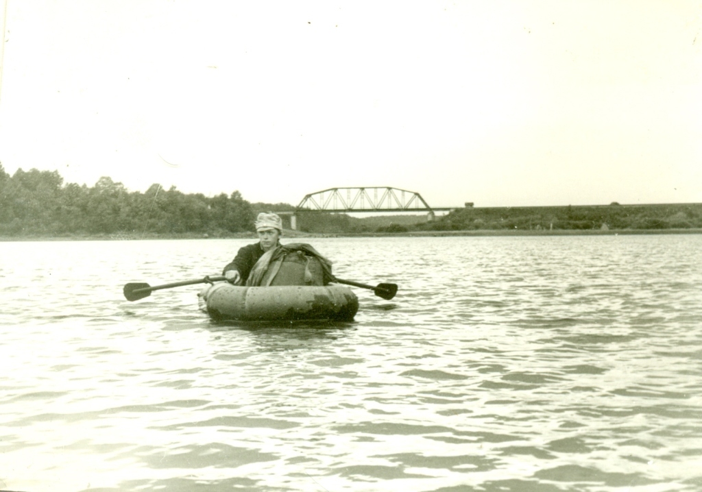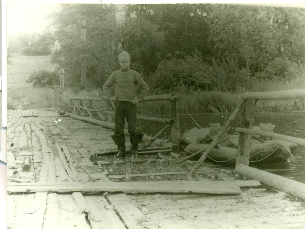 Наплавная переправа в Нестерково. Посередине- "волок" для лодок.
