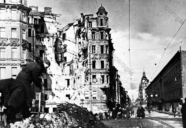 "Сигнал воздушной тревоги поднял седьмой взвод рано утром. Горел старинный дом № 127 на углу набережной Фонтанки. Взвод под командованием Бориса Петровича Попова прибыл на пожар и обнаружил, что горят крыша и верхние этажи. У нижней половины дома не было угла: перед пожаром в него попал снаряд и угловая квартира на четвертом этаже со своим балконом-фонариком как бы повисла в воздухе...