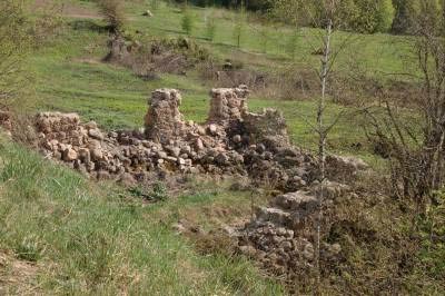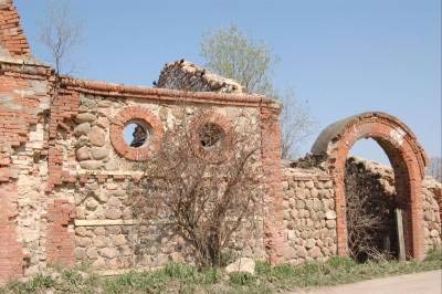 Но разведка ничего не дала, и мы сообразили вернуться к мелькнувшей у дороги развалине. Перебравшись через нее, обнаружили огромное пространство посреди леса, заросшее одичавшими кустами таволги, бузиной, малиной и черемухой. Полуразрушенные строения на фоне сухой травы мы заметили не сразу, и только внимательно приглядевшись, вдруг увидели, как впереди выросли стены, сложенные из желтого бута: