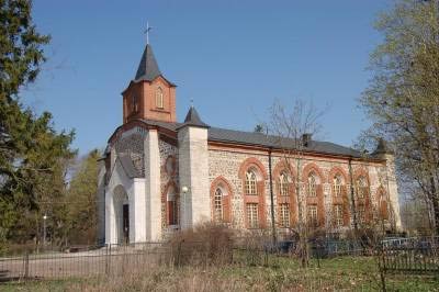 Поднявшись от плотины вверх по шоссе, свернули к церкви Святого Николая Чудотворца (1857, арх.О.В.Бремер, К.И.Брандт, строгий «русско-византийский» стиль). В советские времена церковь закрывали трижды – в 1930, 1939 гг. (храм действовал в 1942 году в период немецкой оккупации) и в 1960 году, в связи с хрущевскими гонениями и отсутствием священника. В здании находились школьные мастерские, затем спортзал. Ныне церковь действует, идет неспешная реставрация.