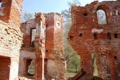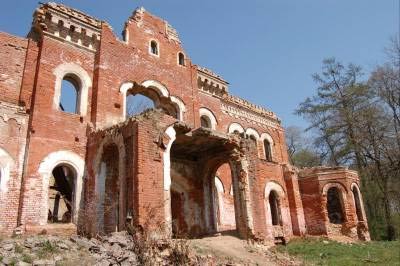 Свернув на нужную дорогу, мы насладились видом бетонного забора, возведенного компанией, превращающей разрушенную усадьбу в элитную базу отдыха. За забором виднелись лишь крыши восстановленного усадебного комплекса; на нашу долю достались полуразрушенные конюшни.