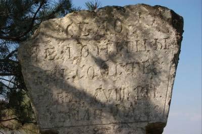 …и межевой столб 1895 года установки, на котором обозначено число крепостных душ (101), проживающих в деревне Яблоницы, а также площадь земельных угодий (164 десятины):