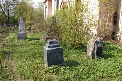 На церковном кладбище находятся фамильные надгробья семей Веймарнов, Оболенских и Блоувельтов: