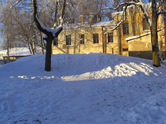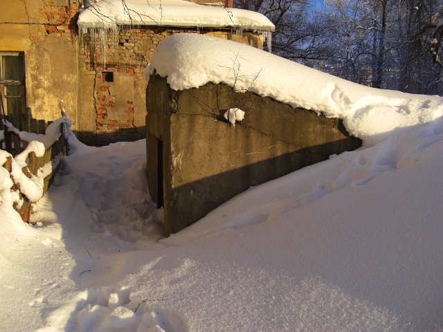 | Ilya писал(а) вт, 26 января 2010 18:35 | Есть сомнения относительно данной версии. Зачем три входа с разных сторон? Один из входов имеет форму амбразуры (ширина больше, чем высота), даже согнувшись взрослому войти сложно (да и амбразура сильно приподнята над уровнем пола. Знаю, что с 63-го и позже как убежище это сооружение не использовалось. Во время войны убежище находилось на противоположной стороне улицы за зданием бани (Кадетский, д.8). Да и кто бы позволил строить убежище после войны так близко к окнам жилого дома?
