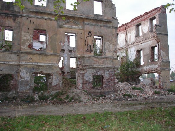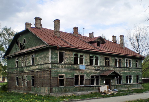 А это, кажется, бывший путевой дворец Александра Первого. Ул. Горбунова, у Безымянного оз. Фото из "ВКонтакте". Рядом ещё два заброшенных кирпичных дома. Хорошо видно с ж/д.