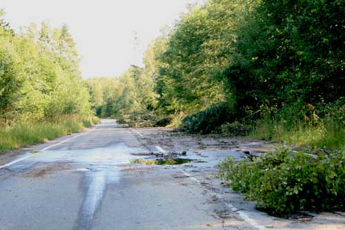 В моей деревне (около оз Отрадное) ни света ни воды. Столетние дубы, липы вырваны с корнем или переломаны