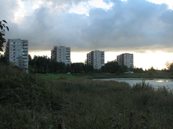 А за рекой, словно башни и стены какой-то циклопической крепости уже встают новостройки Рыбацкого: