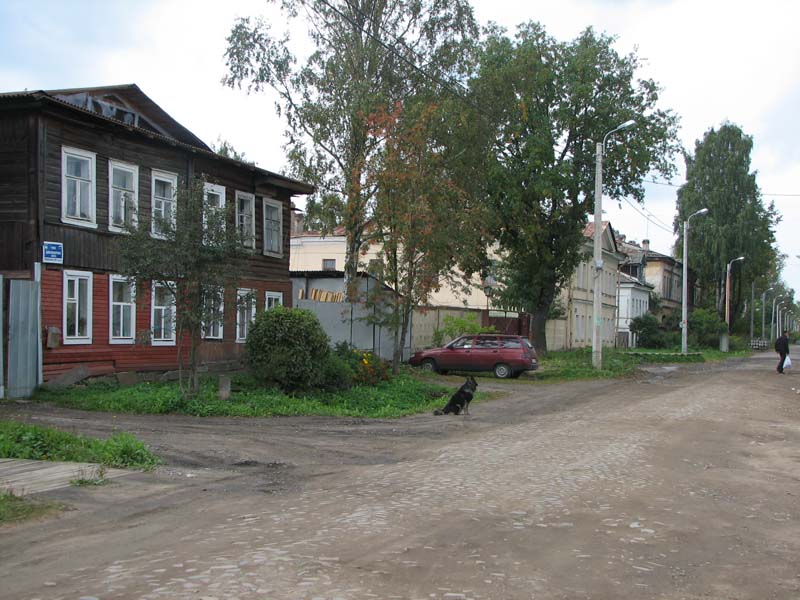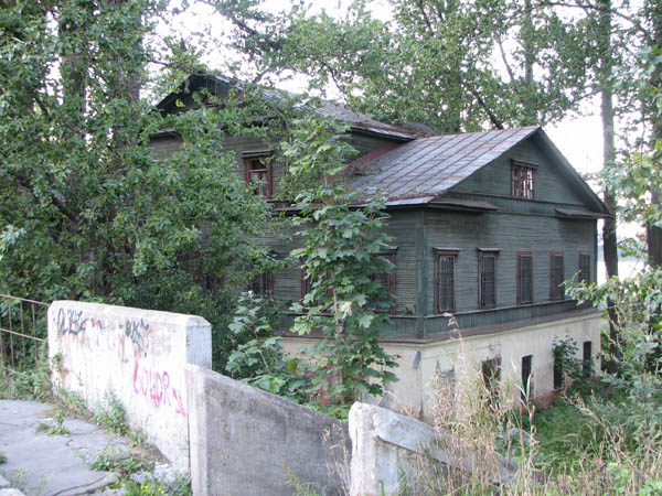 На первом снимке, на втором плане — пара жилых жомов 1840-х годов, а за ними — здания бывших начальных училищ (1873 г.). На втором снимке на переднем плане — здание Почтового двора, (1830-40-е гг. с позднейшей перестройкой), которое и ныне служит Почтовому ведомству. К сожалению, многие каменные здания просто заброшены. Среди деревянных попадаются красивые двухэтажные особняки конца XIX века с мезонинами, принадлежавшие, очевидно, зажиточным купцам:
