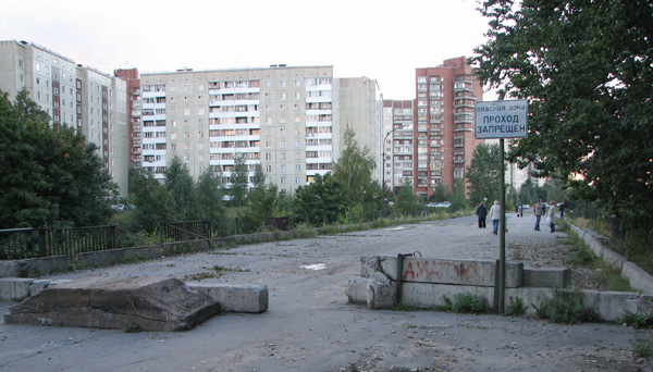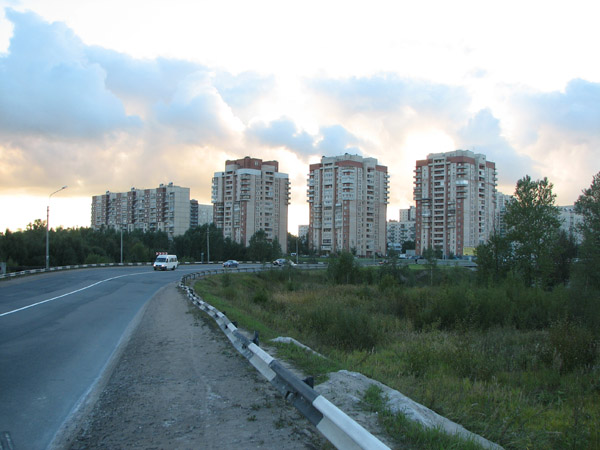 Южные границы города вообще, в сравнении с северными, очерчены довольно резко, хотя административная канцелярская реальность здесь, как и везде, расходится с архитектурной действительностью. Усть-Славянка вместе с Рыбацким относятся к Невскому району города, который пригородным не считается. И даже к одному муниципальному округу — 52-му Рыбацкому. Так что, не верьте глазам своим... Или верьте, и считайте, что вы в пригороде, ибо реку мы пересекать в этот раз не будем. Кстати, классическая бетонная стела начала 1970-х гг. с надписью "Ленинград" стояла на шоссе примерно в полутора километрах восточнее, у теперешней АЗС "ПТК".