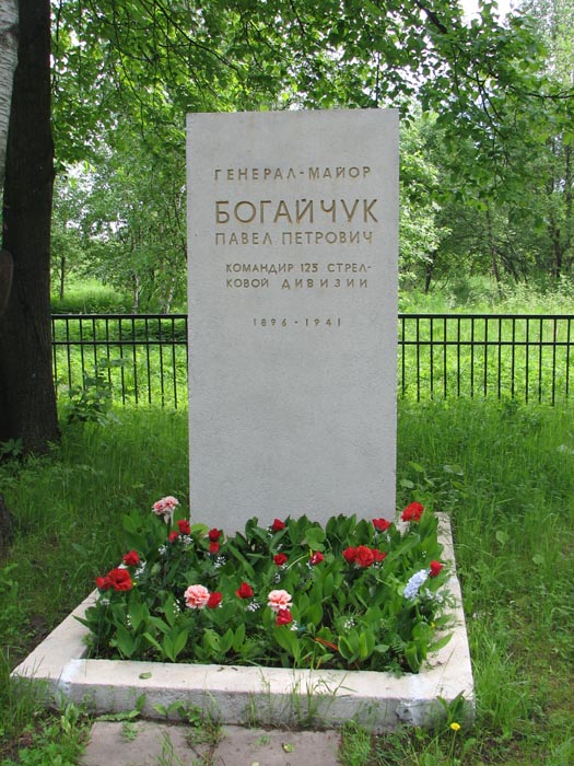 — пополнение в мою коллекцию "улиц-героев Ленинграда". Когда соберу более или менее полный альбом, обязательно поделюсь... А комдив генерал-майор Павел Петрович Богайчук погиб под Колпино 21 декабря 1941 года от прямого попадания снаряда в блиндаж КП дивизии. Похоронен здесь же, в Металлострое. Улица его имени отделяет жилищный массив Металлостроя от карьеров какого-то давно канувшего в лету местного кирпичного завода, а вся местность в народе именуется Озерками: