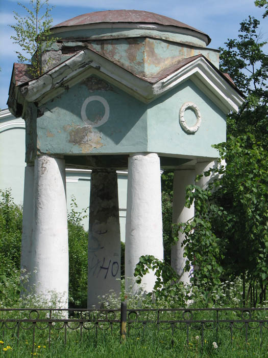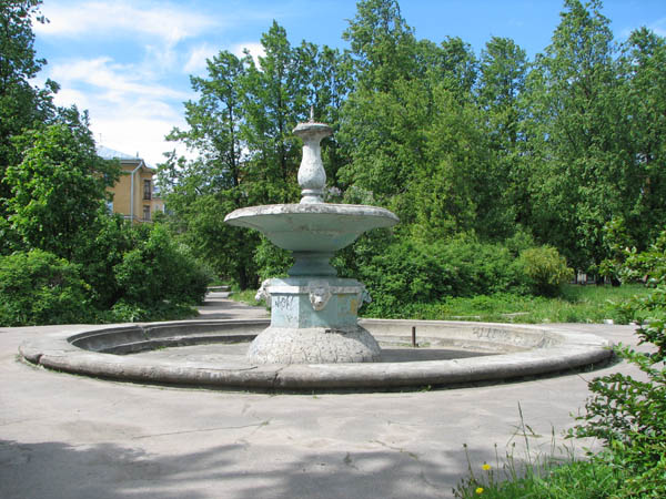 Эта часть поселка считается "старой", то есть построена в 1950-е годы. Не помню, говорил я или нет во время прошлых путешествий по Шлиссельбургскому шоссе, но почти все памятники "сталинского ампира", как дома культуры, так, в особенности, и жилые постройки в этих местах построены пленными немцами на месте развалин, оставленных их товарищами по оружию. Между прочим, на заднем дворе этого дома культуры в атласе был помечен еще один памятник, оказавшийся заброшенным фонтаном, а рядом — пара беседок в том же состоянии: