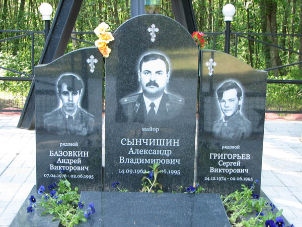 а на участке слева — два, посвященных "солдатам, сержантам и офицерам 258, 268 стрелковых дивизий":