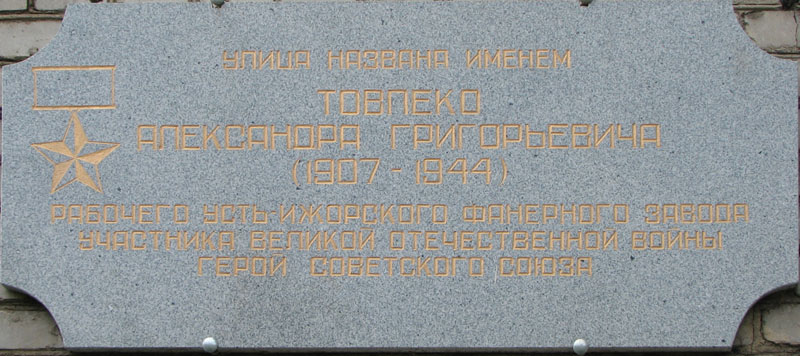 1. Улица имени героя - Александра Товпеко. Еще улица интересна тем, что у нее нет четной и нечетной сторон - все дома идут по одной стороне и подряд. Памятная доска летом была.