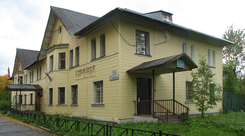 Напротив железнодорожной платформы стоит, наверное, самое красивое здание поселка (ул. А. Товпеко, 15):