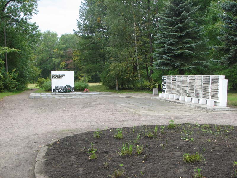 Интересно, что на аллее недавно установлено что-то типа информационного щита, на котором перечислены имена всех 173-х захороненных здесь воинов — явные следы недавно прошедшей кампании празднования 65-летия Победы.