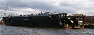 А на днях мне случайно попалось объявление о продаже его на металлолом, помимо прочего, в объявлении указывалось, что плавдок был построен аж в 1910 году в Германской Империи.