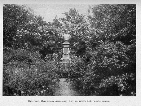 В Большом лагере, перед Царской ставкой,открытый в 1898 г. в паре с памятником Великому Князю Михаилу Павловичу.