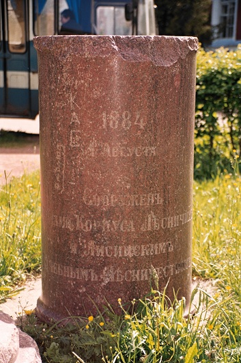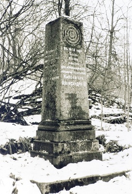В Мурино, перед часовней. Открыт в 1911 г. Сохранилась лишь цокольная часть постамента. Часовне повезло больше.