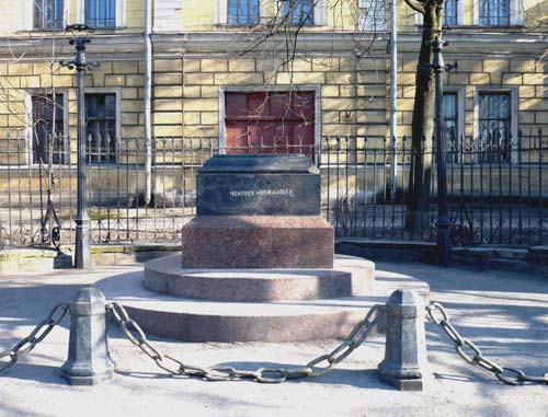 Всем известный по сохранившемуся постаменту на наб. Фонтанки, 132, открытый в 1893 г.Как недавно рассказывали по НТВ,каким-то питерским скульптором ещё несколько лет назад была изготовлена модель бюста, однако необходимой на отливку и восстановление памятника суммы власти упорно не дают.