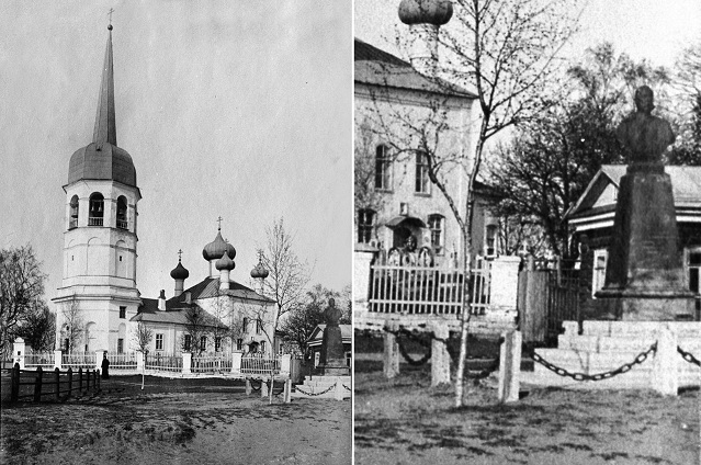 Отчегож...(это бывшая Новгородская губерния,правда). Всё элементарно - типовой бюст 1911 г. установки, коих в том году по Империи было поставлено несколько тысяч (!),абсолютные аналоги в Мурино и Парголово (см. выше). Пирамидообразные постаменты или же приобретались за отдельную плату или изготавливались на месте из подручных стройматериалов. Кстати, Кирилл спрашивал про современное фото цоколя муринского памятника, но мне туда уж слишком неблизко добираться...