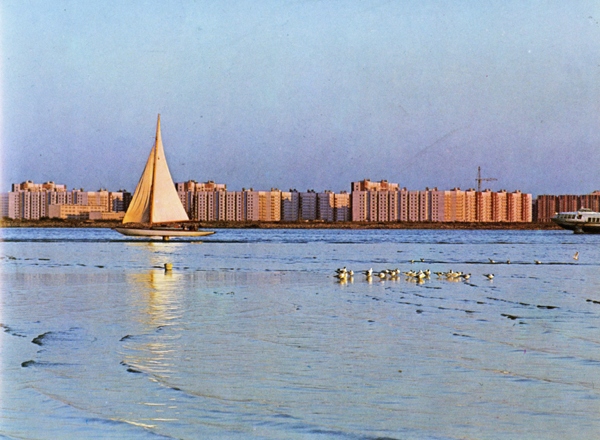 В данном сообщении атрибуция фото проблем, кажется, не вызывает. Уже застроена набережная Смоленки. Чайки ходят по Собакиной отмели. Через секунд 30 яхту обойдёт "Ракета". Пассажиры с её левого борта равнодушно пропустят вид паруса по левому борту, не вглядываясь на палубу яхты в надежде увидеть олигархов с голыми девками. Разве что юная мама в кримплене покажет сидящей на коленях дочке: — "Спортсмены".