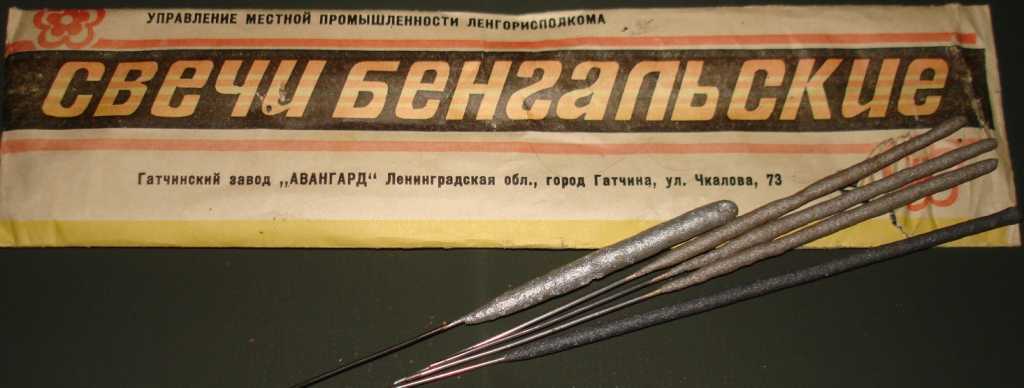 Добавлю некоторые образцы продукции предприятий нашего города и пару из Ленобласти(бенгальские огни-Гатчина,туал.бум.-Сясьстрой).Надеюсь,всё всем знакомо,разве что несколько уточнений: