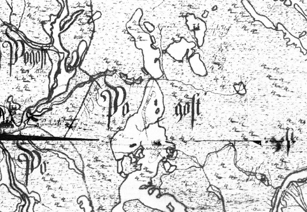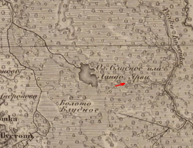 Большое озеро на карте это нынешнее осушенное Блудное болото(Линдо Ярви). (мое мнение).