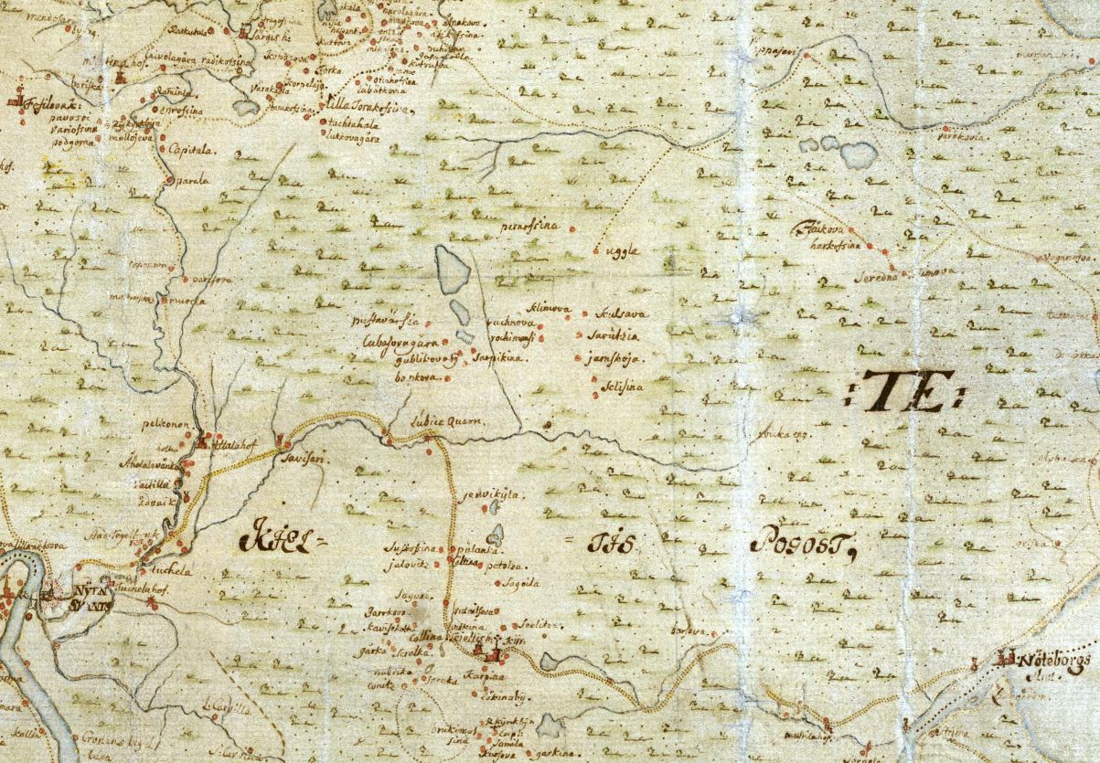 Я же пытаюсь реконструировать дорогу, существовавшую до 1610 г. и не имеющую изначально к Ниену и устью Невы никакого отношения — дорогу из Орешка в Корелу. И анализирую единственный картографический источник, на котором она (как мне представляется) изображена — карту, которую Лео Багроу относит к 1634 г., и на которой упомянутой Вами шведской дороги из Ниена в Нотеборг еще нет. Шведские карты второй половины XVII в. в отношении предмета моего поиска — свидетели второго плана, так как шведы уже успели развить собственную дорожную сеть.