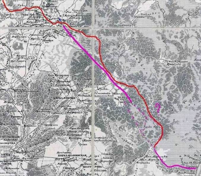 Нет, не противоречие. Я писал это о топографических картах, на которых есть и грунтовки и лесные дороги, в которых зачастую прослеживаются старые заброшенные дороги. Шведские карты XVII в. категории топографических не относятся — дороги там прорисовываются, в основном, главные. На иных и вовсе нет дорог. Так что нет противоречия: шведы построили новую, старую забросили и перестали рисовать. А на топографках начала—середины XIX в. я действительно пытаюсь отыскивать остатки заброшенных в XVII в. дорог. Может быть, за неимением лучшего.